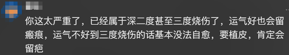 网友表示,怕是会留疤!怎么一点安全常识都没有。