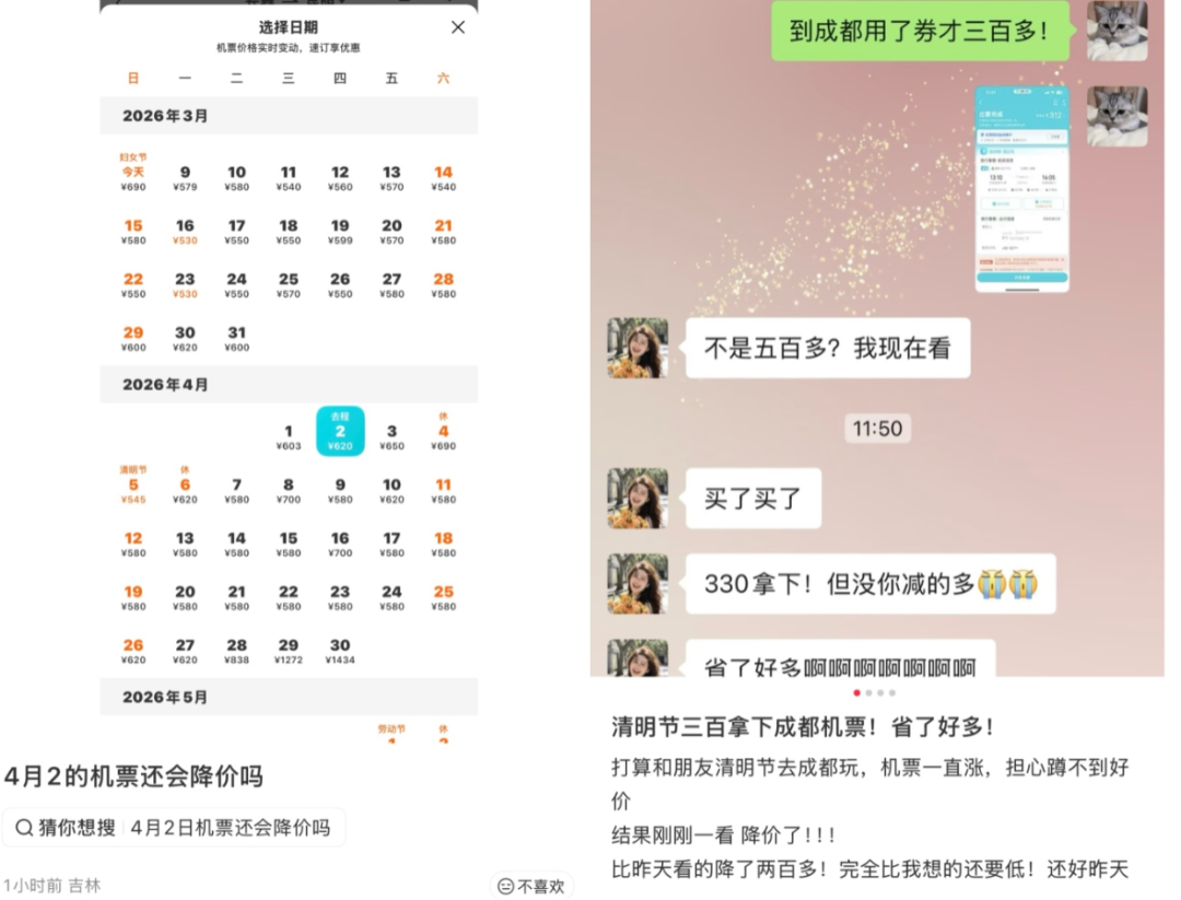 “清明节300元拿下去成都的机票”