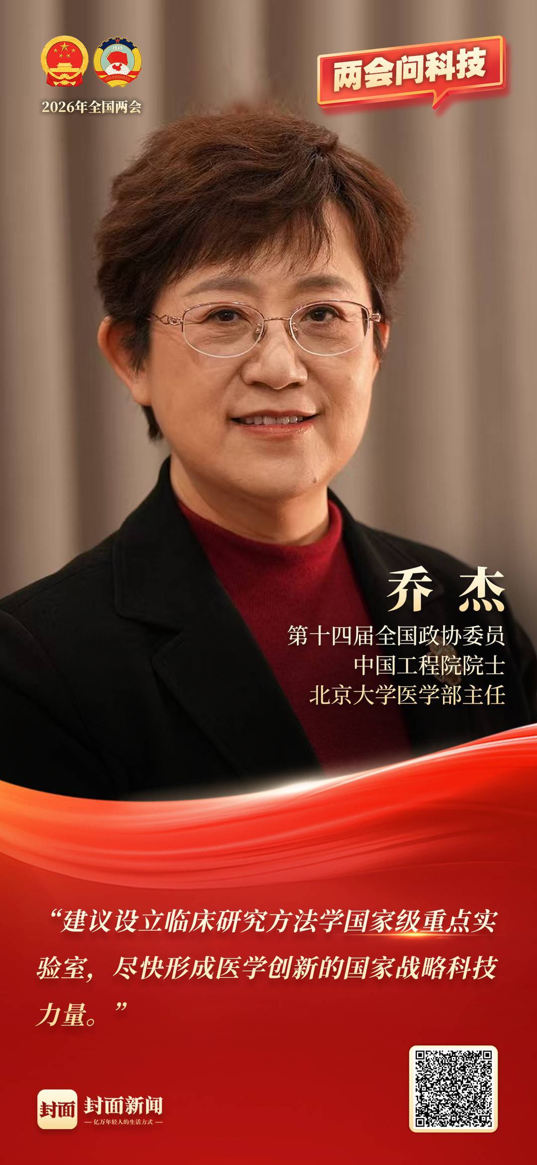 她建议,由国家有关部门牵头设立临床研究方法学国家级重点实验室,组织专家力量,及早布局,尽快形成医学创新的国家战略科技力量。该平台将重点推进五方面工作:研究和发展临床研究新理论与新方法;完善临床研究创新与质量保障的政策、措施与标准;推动人工智能赋能临床研究,建设国际领先的数智化临床研究技术平台;打造国家级转化医学与临床研究样板基地;发展临床研究方法学学科,建立复合型人才培养体系,培养临床研究领军人才。