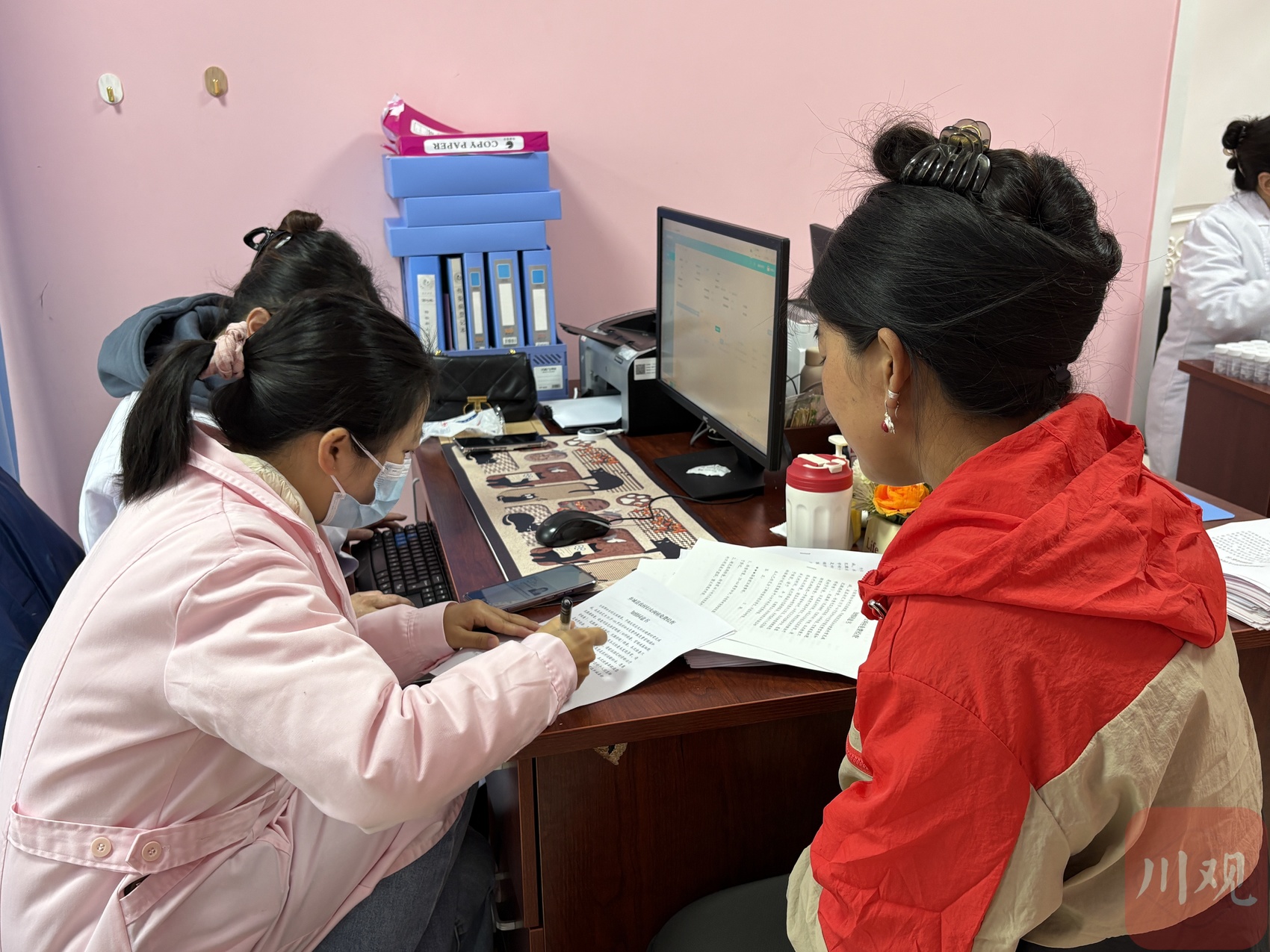 走进筛查点,温馨气息扑面而来。登记办公室里,工作人员笑脸相迎、耐心核对;候诊区里,姐妹们轻声交谈,少了往日的紧张;检查室内,医生专注细致,温柔的叮嘱在设备运转声中格外动听。“放松一点,很快就好了”“平时多注意检查”……一句句贴心话,让医疗检查充满温度。
