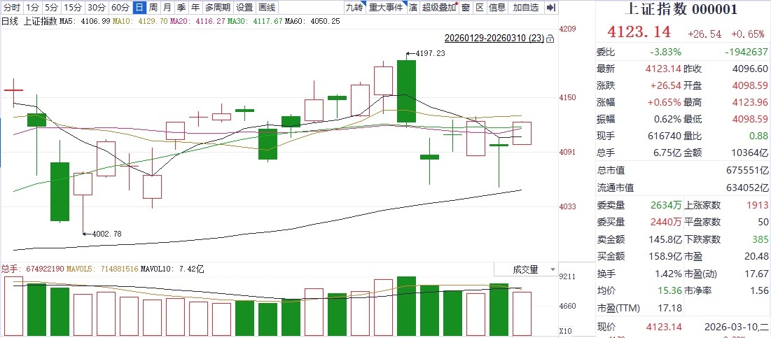 短期市场是否就此走好?对此,巨丰投顾高级投资顾问陈宇恒在接受金融投资报记者采访时表示:“中东局势可能缓和带动市场迎来阶段性回升,但成交量不增反减,凸显出投资热情并未真正回暖,观望情绪依旧浓厚。究其原因,毕竟美伊冲突尚未平息,后续走势仍存在诸多不确定性,资金不敢盲目进场布局。从技术面分析,指数短期回升虽呈现双底雏形,但仍处于4197点以来的回撤趋势中,日线级别调整尚未结束,短期走势或仍有反复。若缺乏新的政策或事件催化,市场重心回落的趋势或将延续。”
