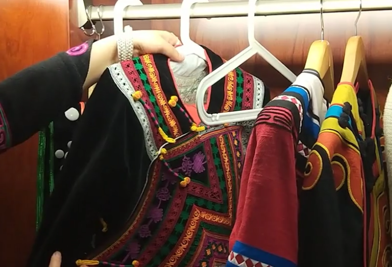 打开衣柜,12套充满民族风情的精美服饰整齐挂着。