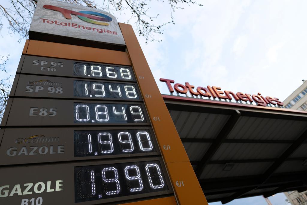 这是3月9日在法国巴黎拍摄的一座加油站的油价牌。美国和以色列对伊朗发动军事打击以来,法国加油站燃油价格明显上涨。新华社记者 邬惠我 摄