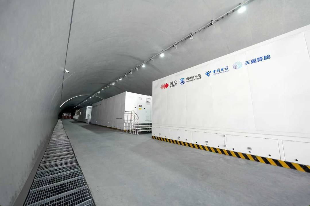 在甘孜州雅江县两河口水电站的隧洞里,一连串白色“集装箱”被放置在洞内,这是全国首个高海拔岩洞式算力舱智算中心。2025年底,雅砻江流域水风光一体化基地的首个算电融合项目——两河口算电融合示范项目在甘孜州正式投运。