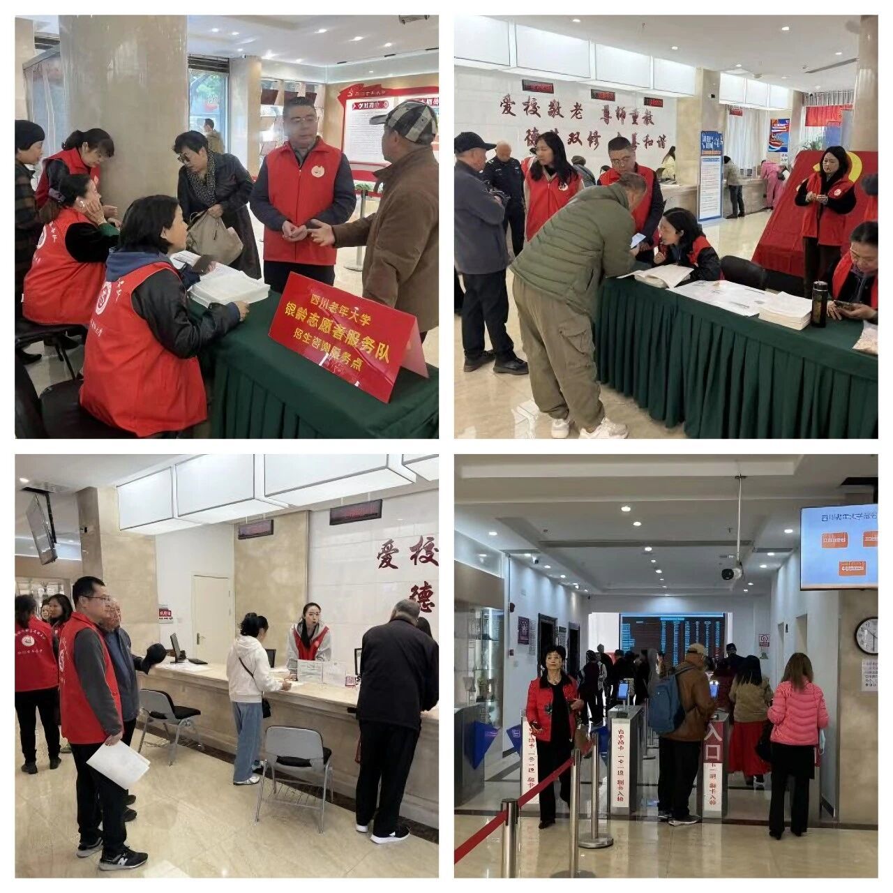 开学当天,四川老年大学银龄志愿服务队在报名大厅设立招生咨询服务点,为新老学员提供贴心服务。学校工作人员与在校学员携手参与志愿服务,耐心解答报名咨询,用热情与责任为新学期开学保驾护航,传递银龄温情。
