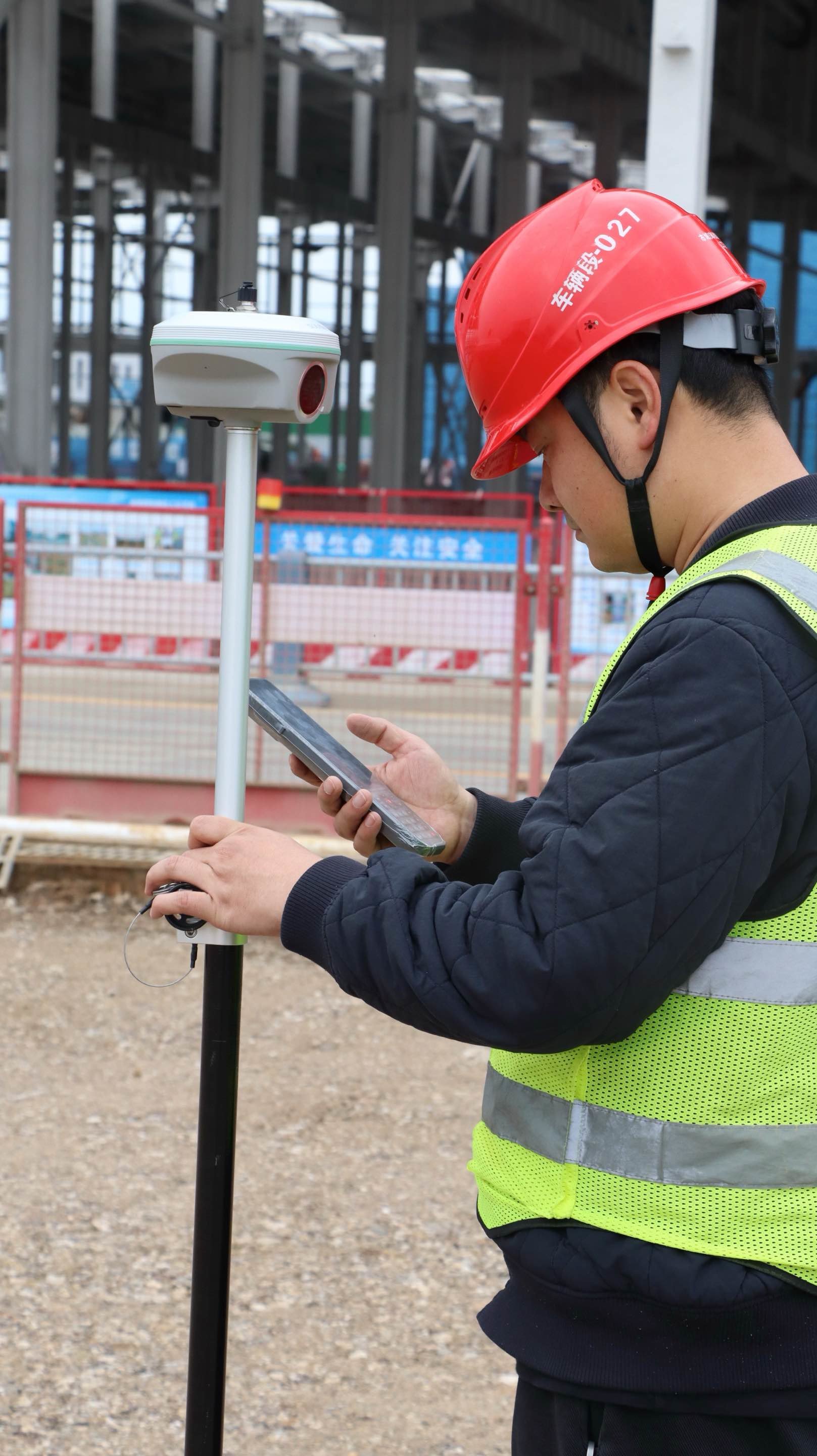 记者走进德阳北车辆段的停车列检棚时,眼前是一片“钢铁丛林”——166根巨大的钢柱拔地而起,支撑起未来的列车检修库。测量员许烁璨蹲在地上,他身旁立着一个形似“蘑菇头”的设备,这就是时刻与北斗卫星“对话”的高精度定位终端。