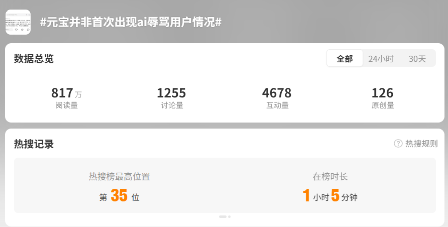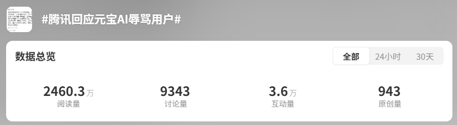事件发生后,腾讯元宝的不当言论引发全网高度关注,相关话题“腾讯元宝向用户道歉”“元宝并非首次出现ai辱骂用户情况”登上微博热搜,阅读量合计超3000万,舆论在小红书、抖音平台迅速发酵,引发元宝用户及媒体的广泛关注和评论。