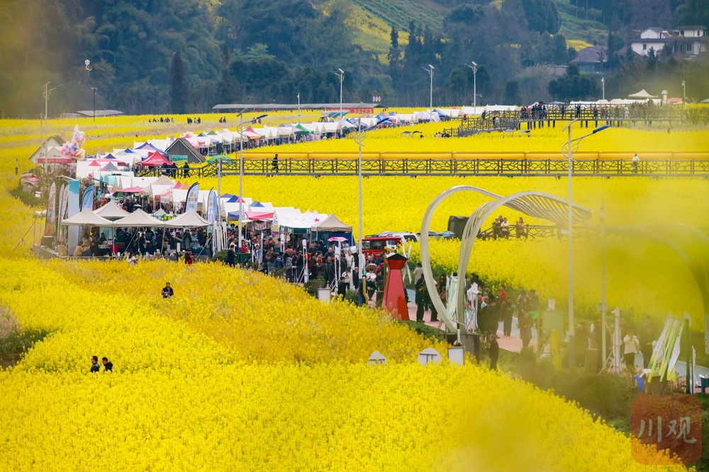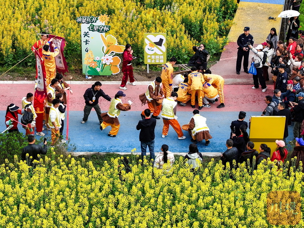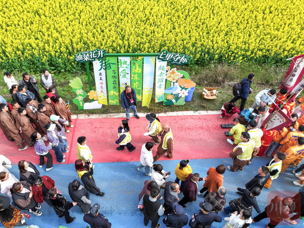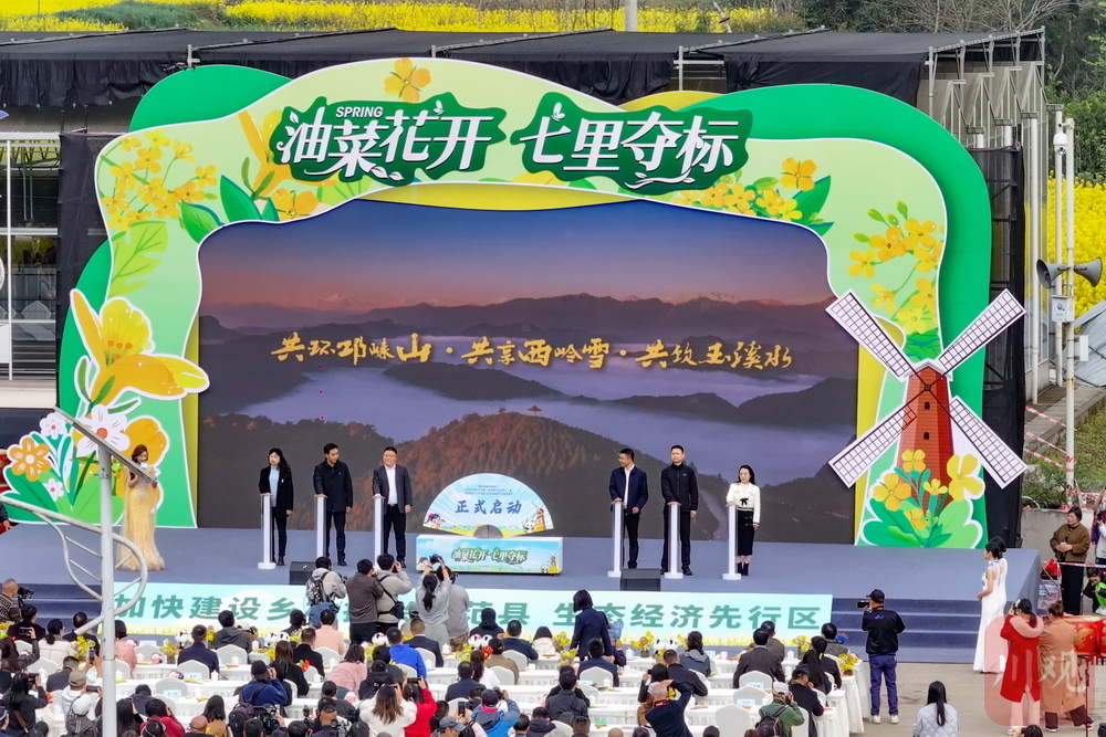 当天,“跟着熊猫春游雅安”2026年春季宣传推广活动暨芦山县第十一届“油菜花开·七里夺标”民俗活动春季文旅消费季在青衣芸谷启幕。花还是那片花,赛道还是那条赛道,但“看客”变成了“玩家”。