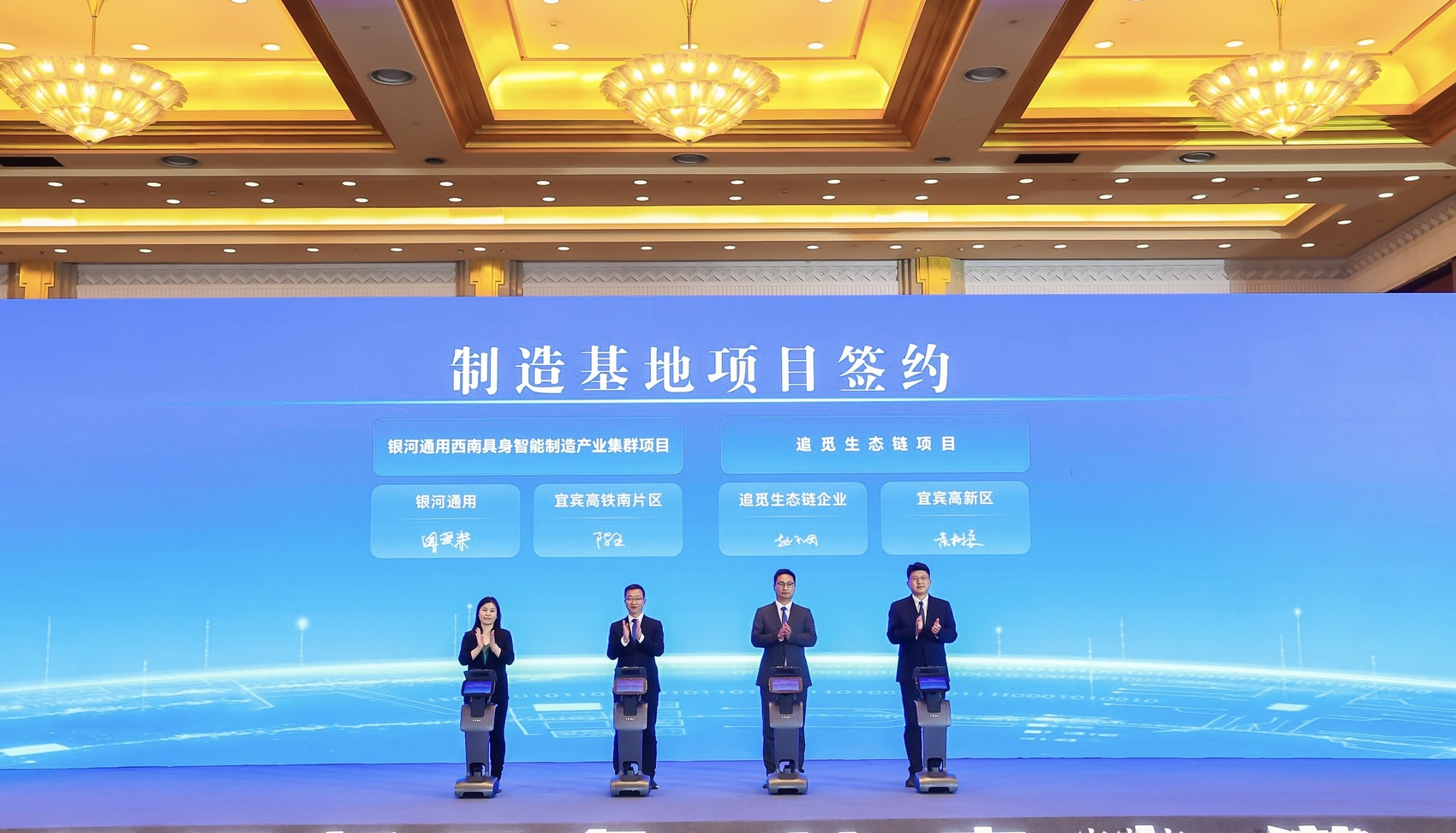 当天的项目签约包括产业链制造基地项目,涉及银河通用、追觅科技;联合场景验证项目,涉及宇树科技、成都阿加犀智能科技;还有人工智能相关项目。