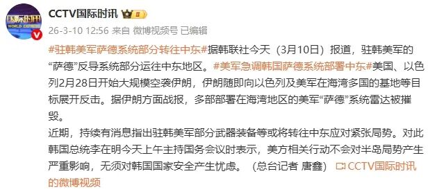 据@CCTV国际时讯报道,美军急调韩国萨德系统部署中东。
