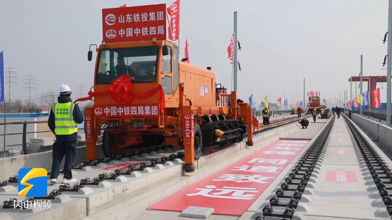 齐鲁网·闪电新闻讯:3月10日10时30分,在山东省滨州市滨州站济滨高铁建设现场,首对500米长钢轨平稳精准铺设在惠滨2号特大桥无砟道床上,标志着济滨高铁正式进入铺轨施工阶段。