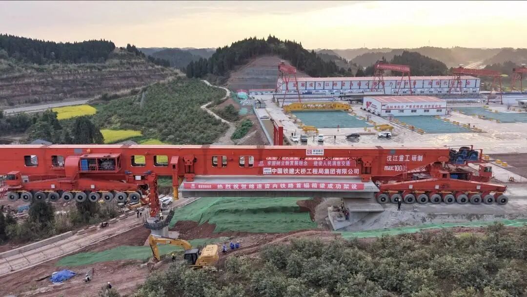蜀道铁路投资集团消息:3月10日,绵遂资内铁路项目绵阳至遂宁段遂宁制梁场圆满完成该段首榀箱梁架设任务。这标志着项目建设正式从下部基础施工迈入上部结构施工阶段,为后续桥梁工程规模化架设奠定基础。