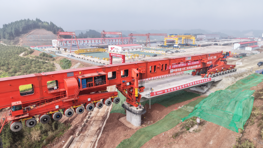 为确保首榀箱梁顺利架设,项目团队围绕“装梁—运梁—架梁”全链条提前谋划,对运架一体机等特种设备开展全面检修调试,同时开展多轮技术交底和安全培训,并针对箱梁大吨位运输特点制定一体化施工方案,精准控制运梁路线和架设节奏。