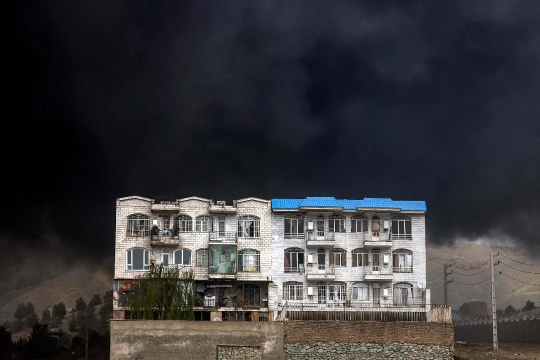 这是3月8日在伊朗首都德黑兰一处储油设施附近拍摄的被浓烟笼罩的居民楼。新华社/法新