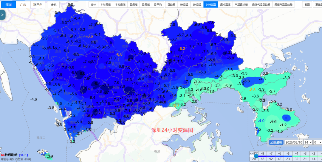 深圳全市气温普遍在17℃—18℃之间