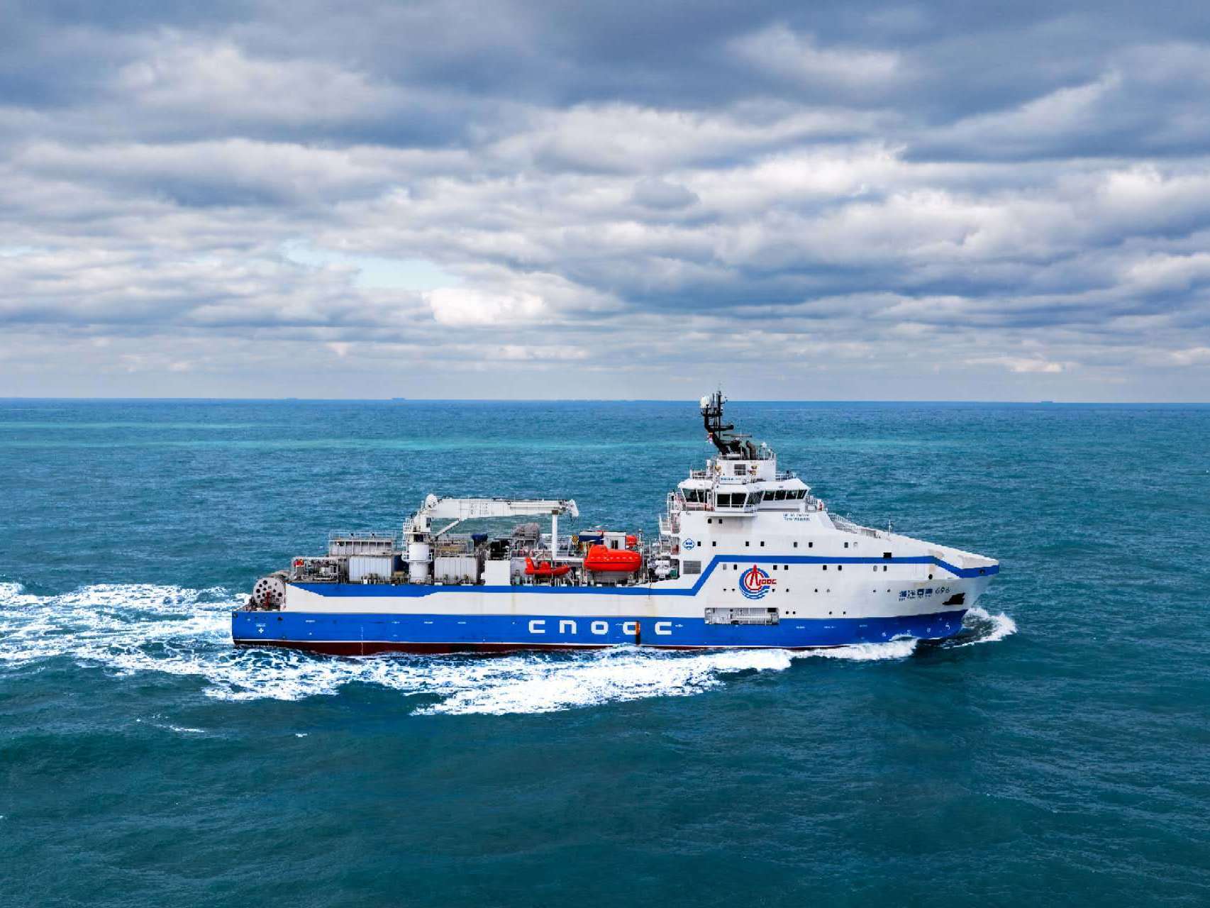 “海洋石油696”船长99.8米,型宽22米,甲板面积相当于3.5个篮球场大小,船舶尺寸在全球同类型船舶中位列第一。船舶配备了全套压裂设备,可执行高排量、高功率的海上大规模压裂作业,凭借高度集成化、智能化的优势,总体性能达到全球同类型船舶领先水平。