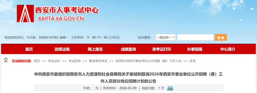 关于削减和取消2026年西安市事业单位公开招聘(募)工作人员部分岗位招聘计划的公告