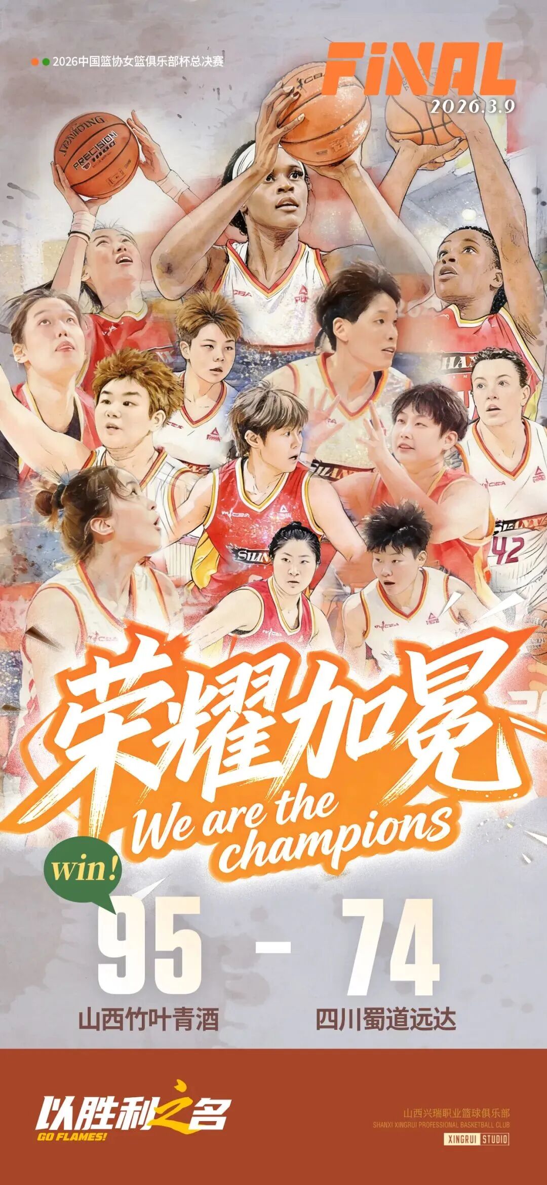 3月9日,第一届中国篮协女子篮球俱乐部杯(以下简称“WCBA俱乐部杯”)落幕,山西竹叶青酒女篮以95比74大胜四川队夺冠。