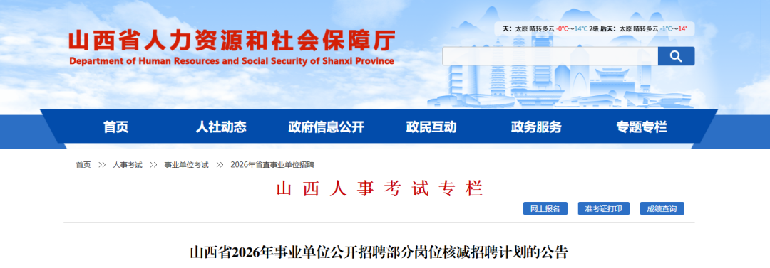 山西省人力资源和社会保障厅3月9日《山西省2026年事业单位公开招聘部分岗位核减招聘计划的公告》,公告称2026年全省事业单位公开招聘改报名工作已经结束,共有255个岗位需核减招聘计划。