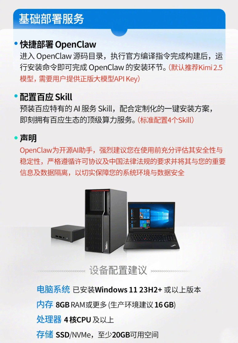 电脑配置方面,该服务推荐 Windows 11 23H2+ 或以上版本系统,以及 8GB 内存 + 20GB SSD 硬盘。