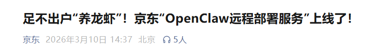 3月10日,京东宣布上线“OpenClaw远程部署服务”,定价399元。