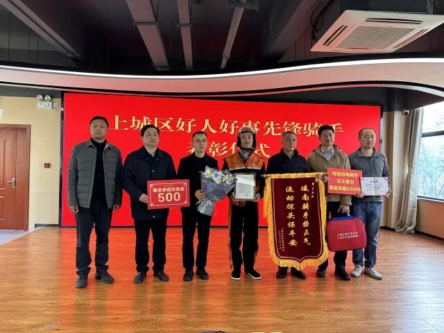 为表彰这份善举,上城区委社会工作部、区应急管理局、南星街道、杭州天然气公司、淘宝闪购平台联动为尹忠宇送来了锦旗、荣誉证书、奖励金和应急礼包,点赞他守护一方的热心与担当。