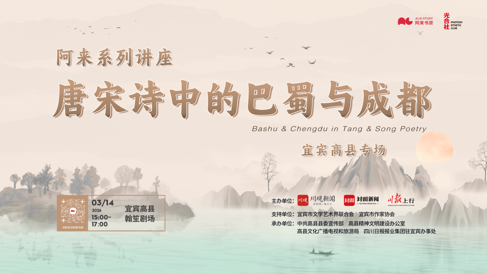 3月14日,著名作家阿来将走进宜宾市高县翰笙剧场,带来“唐宋诗中的巴蜀与成都”专场讲座。讲座以陆游、范成大等文人的经典田园诗作为脉络,带读者穿越时光,品读藏在诗句里的巴蜀农耕日常、农家喜乐,探寻古典田园诗与巴蜀大地的深层联结。