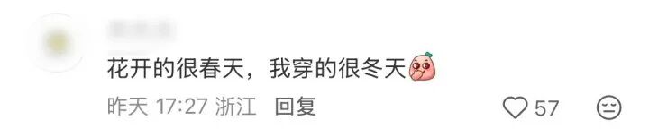 春日气温起起伏伏,这两天有网友吐槽“已经穿了5个月的羽绒服了”,也有网友发问:杭州要什么时候才能脱了羽绒服啊?还有的网友表示:“花开得很春天,我穿得很冬天。”