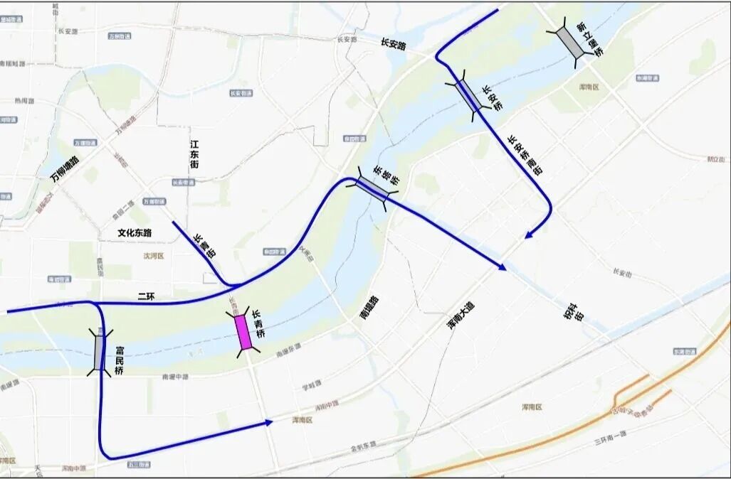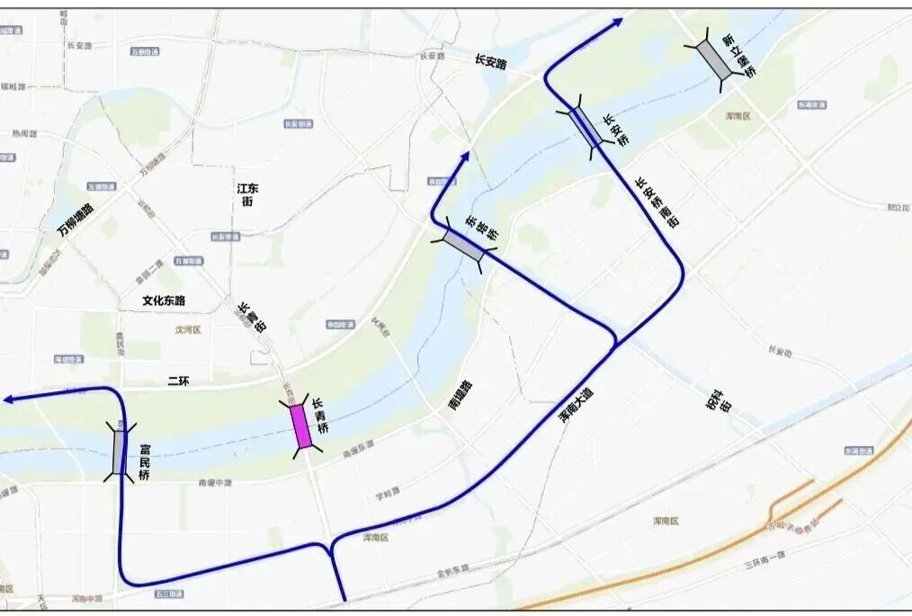 浑南与市区往返建议绕行长安桥、东塔桥、富民桥等,铁西、于洪、东一环/二环去往浑南也有对应绕行路线,大家提前规划出行!