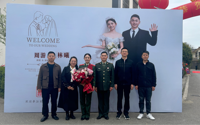 这是一场特殊的婚礼。两位新人不仅同年入伍、同年退伍,还都是荣立过三等功的优秀退役军人。他们曾以青春赴使命、用坚守护山河,如今在故乡的春日里,许下相守一生,彼此守护的浪漫誓言。