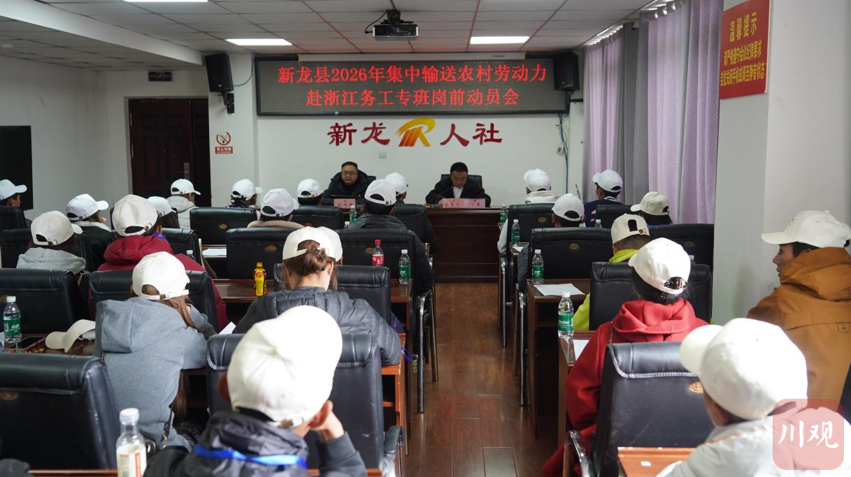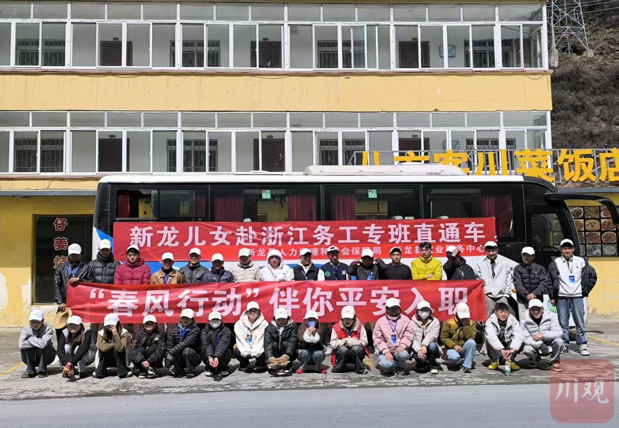 日前,新龙县正式启动首批集中劳务输出,32名农村劳动力搭乘免费务工专车奔赴浙江就业。