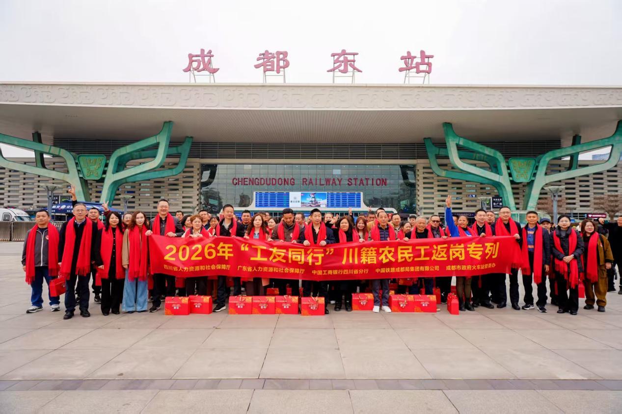 2026年“工友同行·返岗专列”护送川籍农民工奔赴广东。