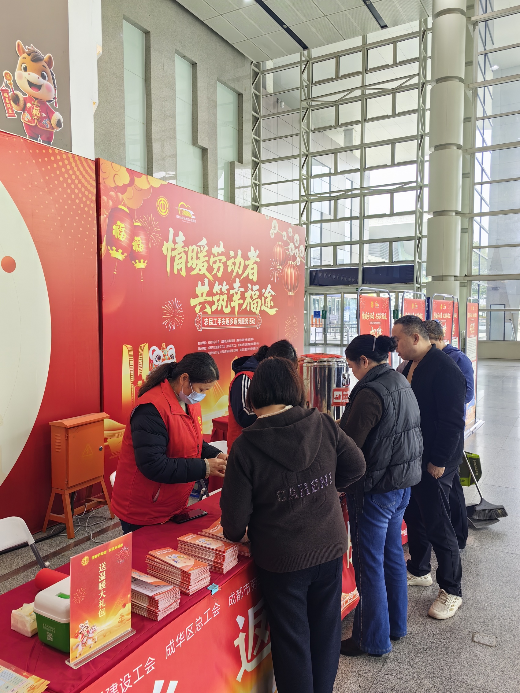节后,返岗务工热潮如期而至。3月10日,成都东站内人头攒动,众多农民工朋友怀揣着对新一年的期盼返回成都。由成都市总工会、成都市交通运输局、成都市政府火车站管委办主办的“春风送岗・前程似锦”就业创业服务专场活动暖心开启,为返岗农民工搭建就业桥梁,让返岗之路与就业之桥“无缝衔接”。