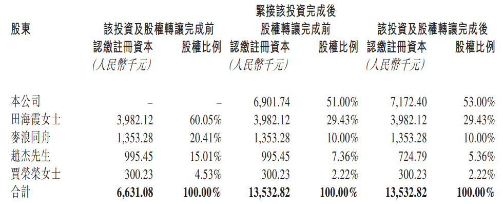 股东信息方面,交易前,田海霞直接持有福鹿家60.05%股份,并通过郑州麦浪同舟企业管理合伙企业间接控制福鹿家20.41%的股份。公告披露,田海霞及麦浪同舟就福鹿家的原投资成本分别为约2548万元及135万元。
