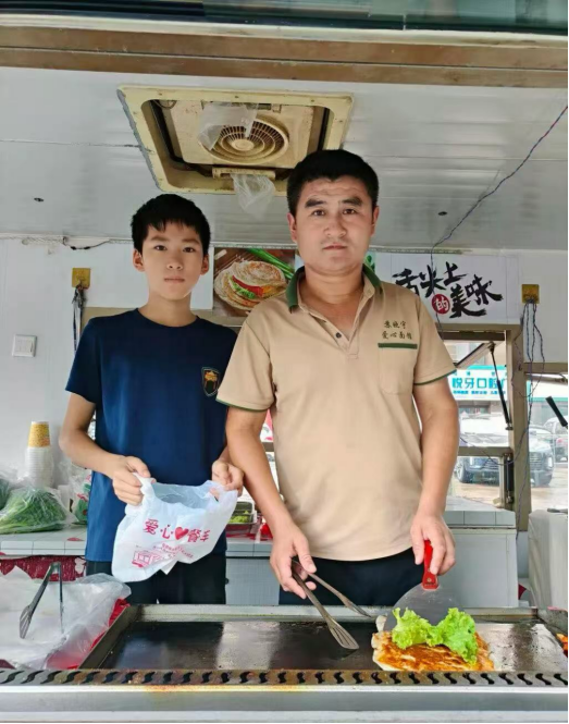自从妻子患病后,张哥卖了面馆,每天与儿子摆摊卖早餐
