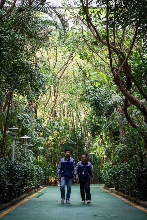 在冠旭电子,“绿色工厂”不仅是生产空间,更是人文空间。公司倡导“让每个工位看见阳光”,德庆工厂通过天井设计将自然光漫射进车间;厂区种植的海南黄花梨、楠木等优质乡土阔叶树种达5000株以上,既是吴海全儿时情怀的寄托,也是企业长期主义价值观的象征。