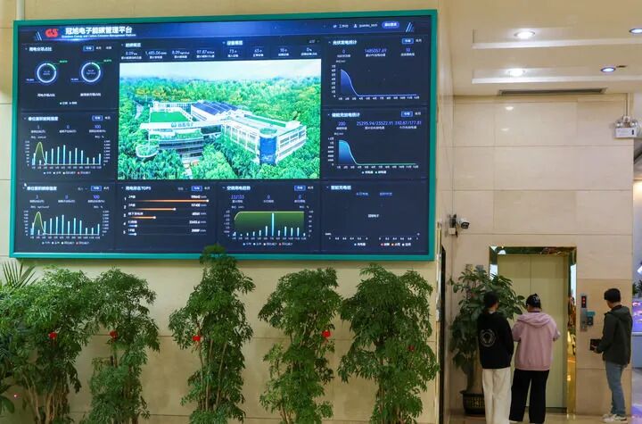 2025年4月2日,在冠旭电子深圳总部拍摄的冠旭电子能碳管理平台。新华社记者毛思倩摄