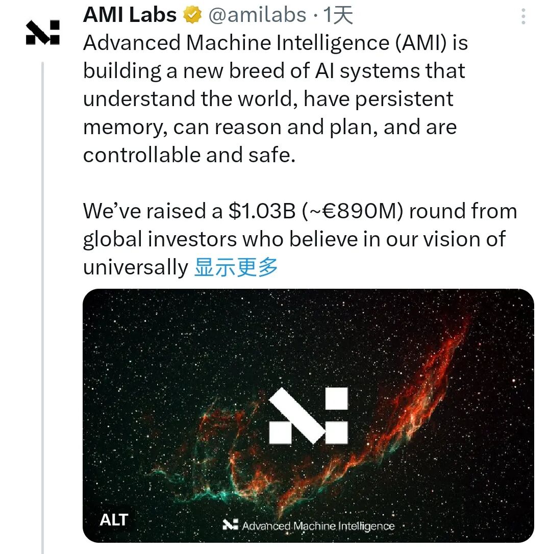 当地时间3月10日,AMILabs宣布融资超过10亿美元。图片来源:AMILabs社交媒体截图