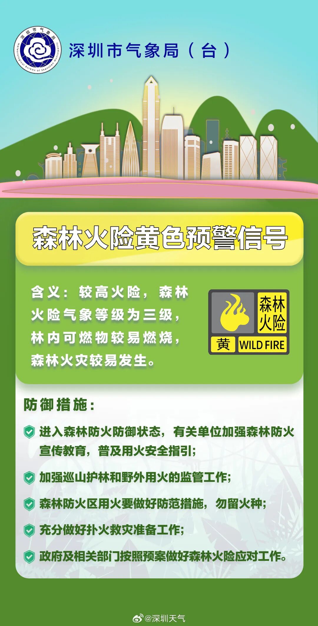 刚刚深圳气象台发布深圳市森林火险黄色预警信号