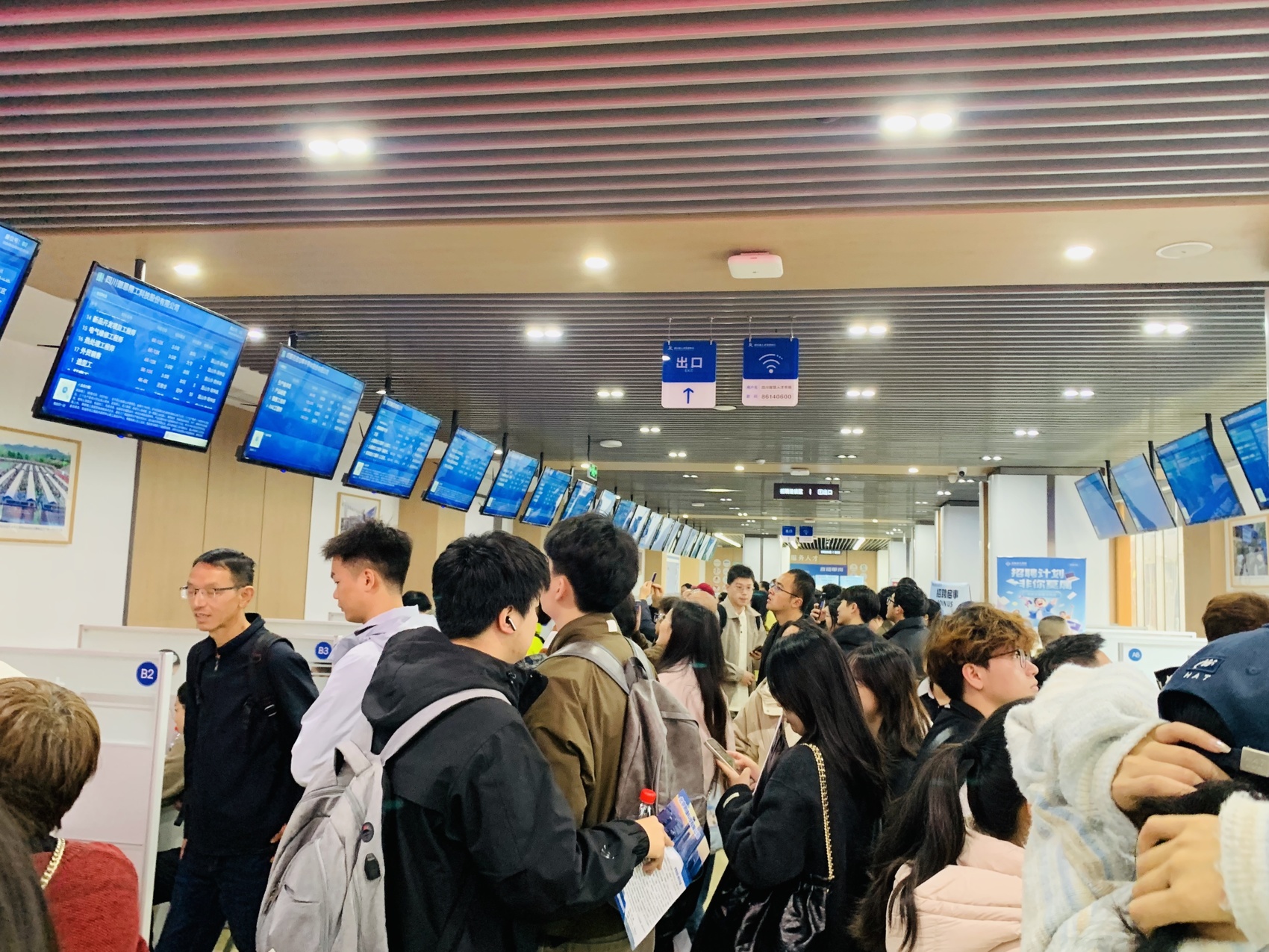 郭川源与两位大学同学分别从绵阳、南充、达州赶来。三人去年均在云南工作,今年不约而同选择回川就业。“走再远还是家乡好,在家乡安家置业是今年最大的心愿。”他们站在大厅屏幕前反复对照岗位信息,互相确认求职方向。