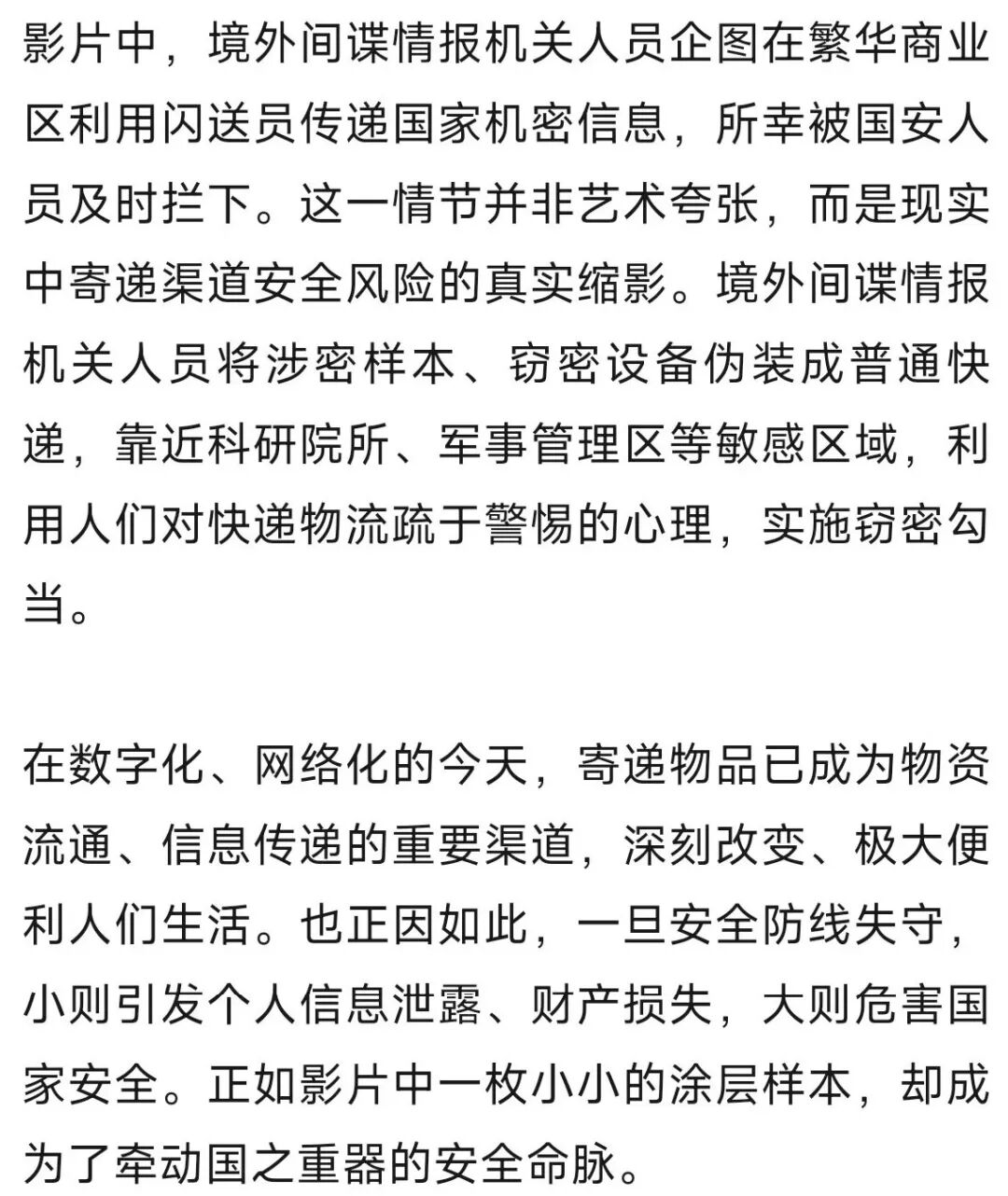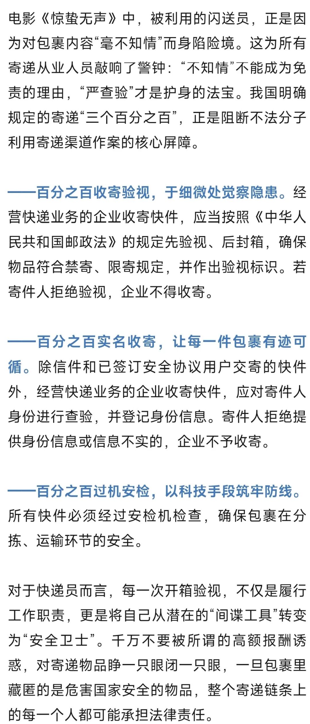 3月11日,国家安全部微信公众号发布文章《从〈惊蛰无声〉看寄递安全防线》,全文如下: