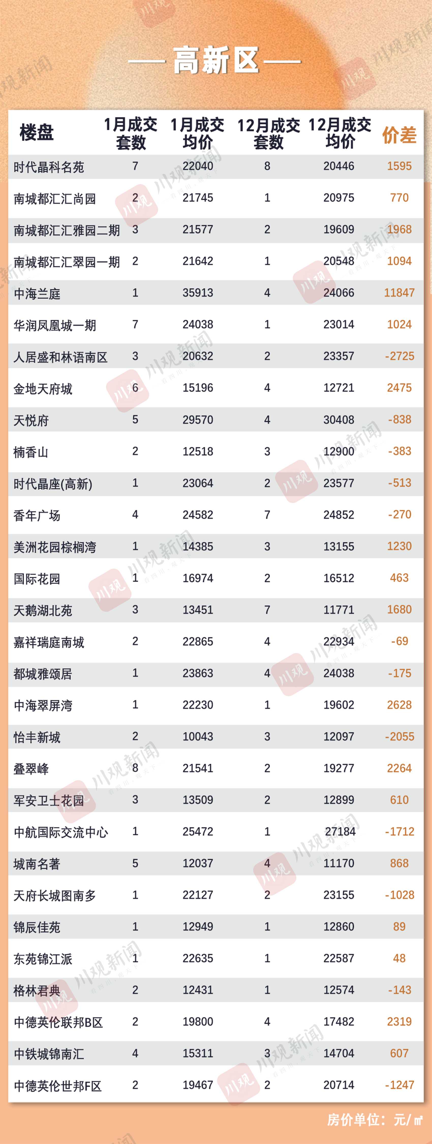 特别提示:本月收录数据,仅为成交房屋的“一房一价”,而并非“均价”或代表整体形势,仅供参考。本表格采样自贝壳、安居客、房天下等公开平台,绝大多数情况下反映的是二手房的成交情况,其内容仅供参考。最终解释权归川观新闻所有。