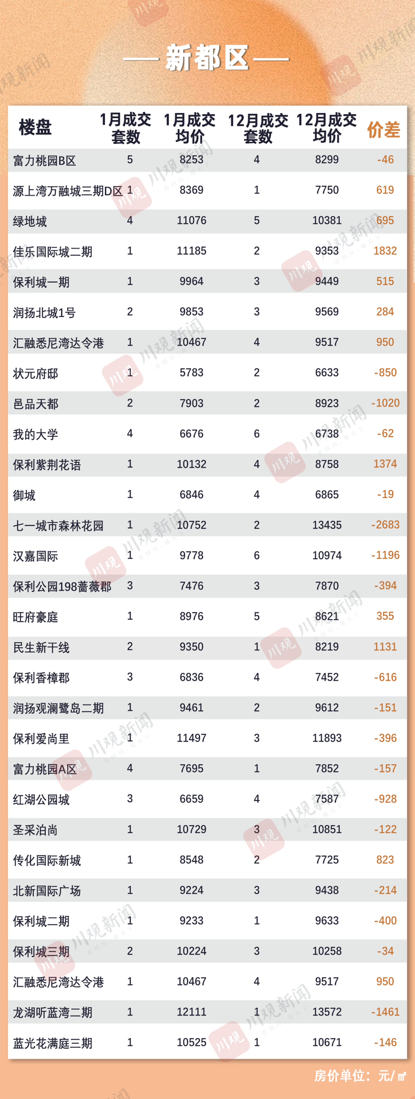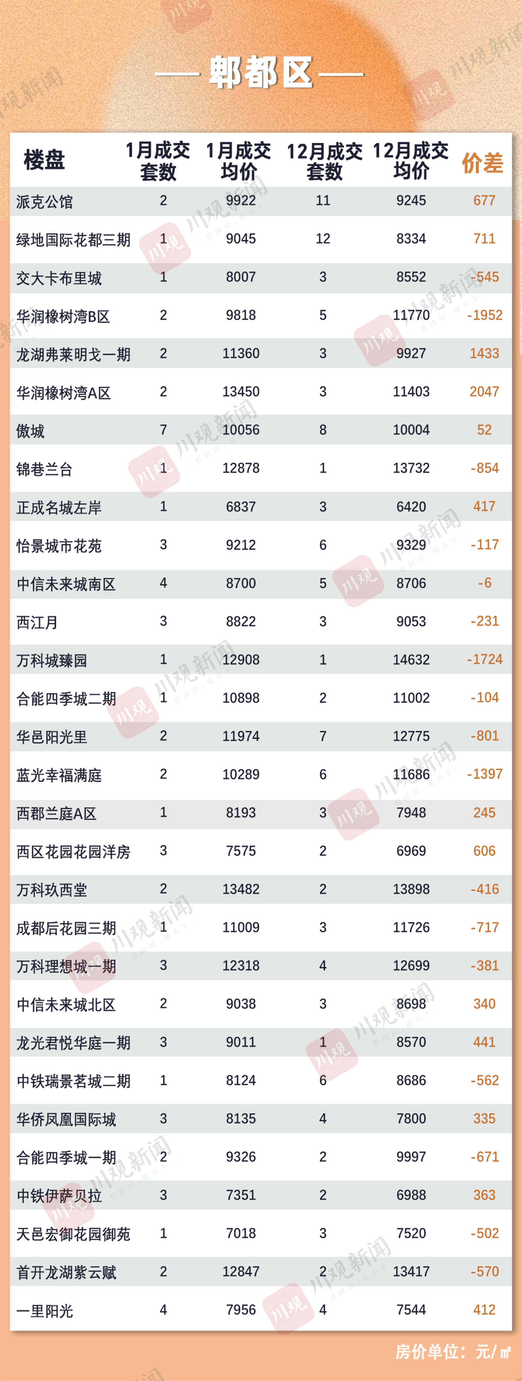 川观新闻联合成都业内知名平台“都成新楼市”微信公众号,持续带来覆盖热门片区、楼盘维度的房价干货。(《2025年12月成都楼盘真实成交价大全来啦丨川观生活指数 一数知四川》←←戳我了解)