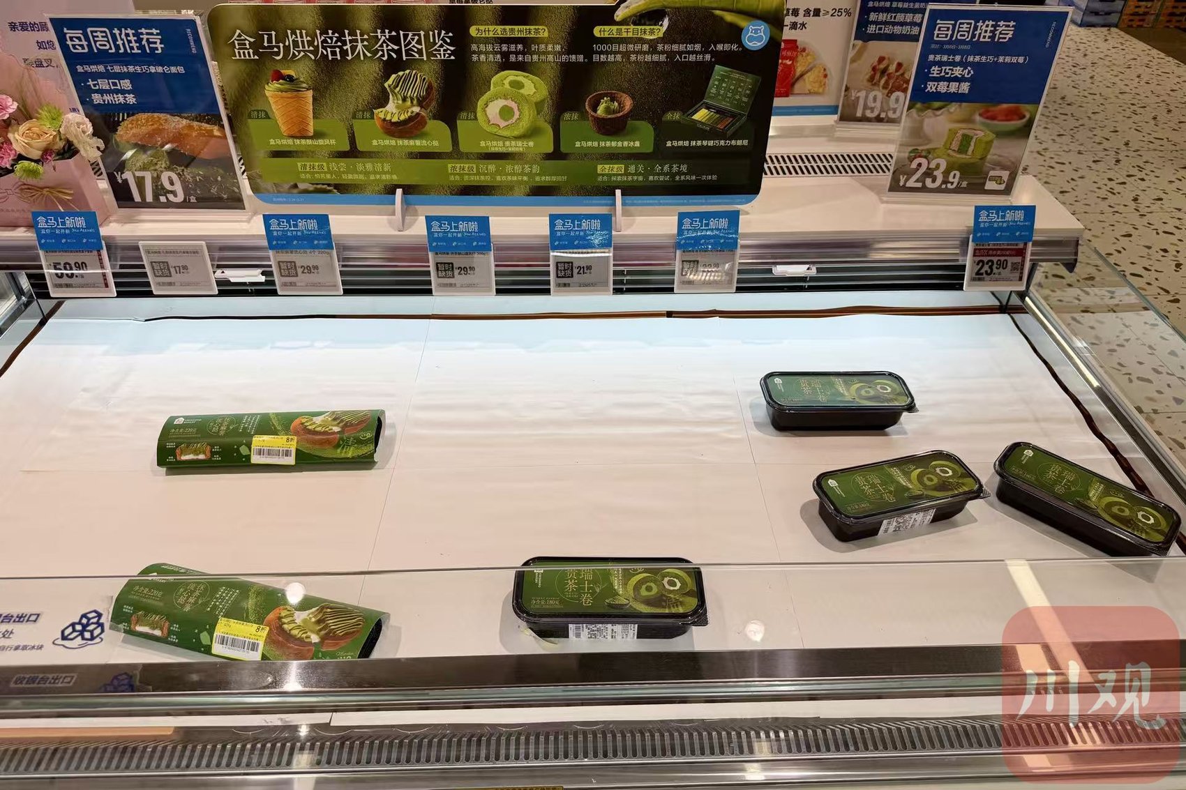 “这是把春天搬进商场。”3月11日,川观新闻记者在成都走访多家商超时注意到,多家盒马门店内陈列了以绿色为主色调的冰柜。家住成都高新区的杨女士自称“抹茶控”,她告诉记者,“冰柜里藏着来自贵州山野的‘绿’——千目抹茶,不仅烘焙抹茶产品品类多,还分了口味等级,都想买来尝鲜。”