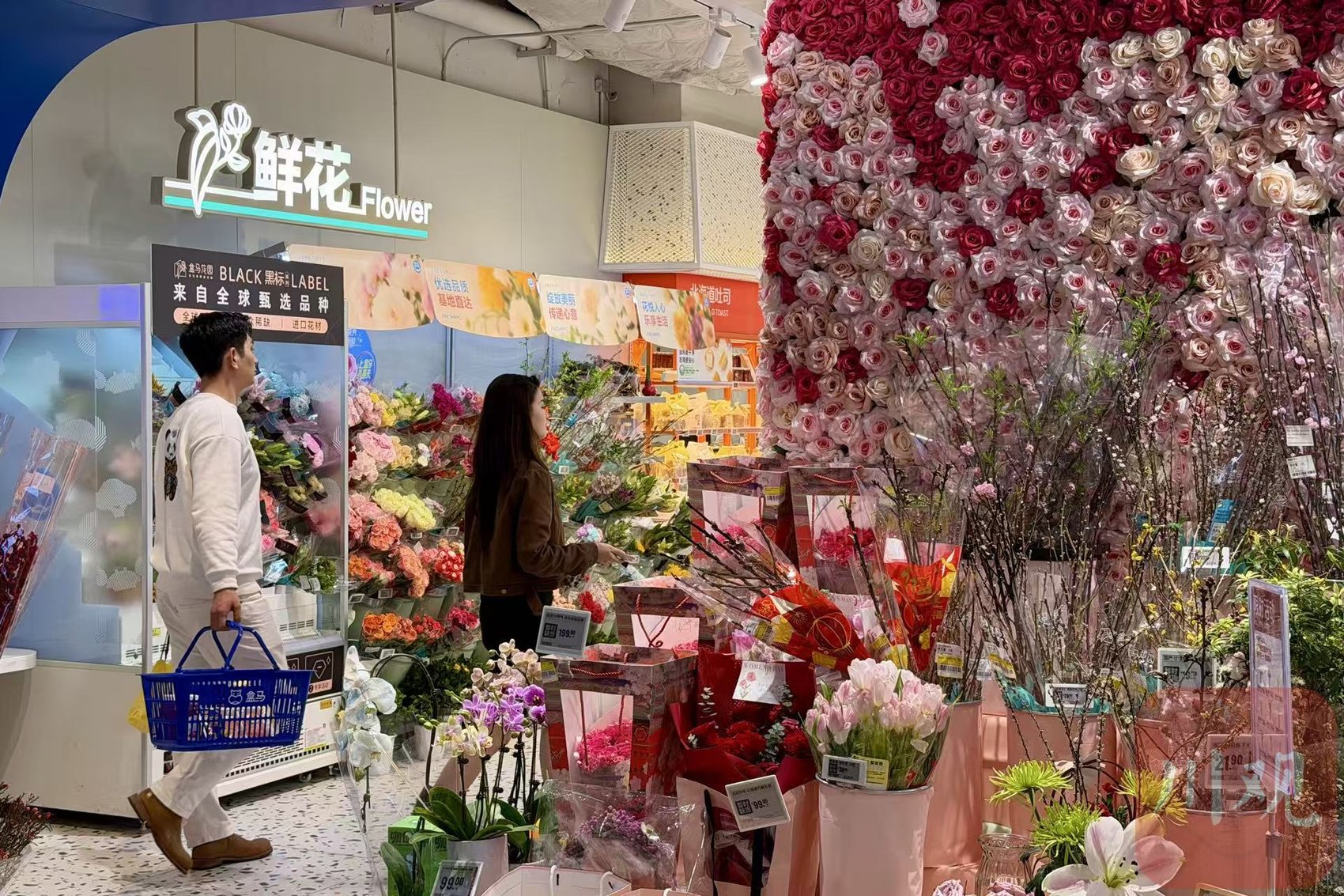 成都一商超摆放了多种多样的鲜花。赵泽宇 摄