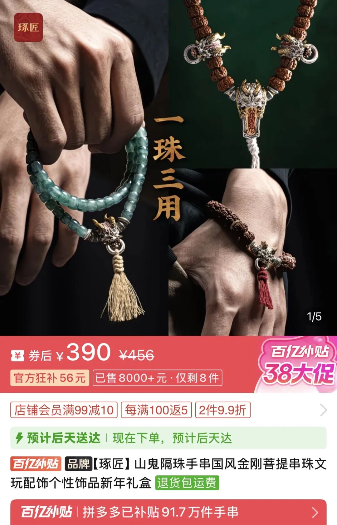 此前,琢匠有一款手串因为成了“杨幂同款”而爆火,这款单价五百多元的高客单价产品迅速获得爆发销量。黄新表示,这完全是一次机缘巧合,“是客户发现了这款产品被杨幂戴过,我们自己本来都不知道”。