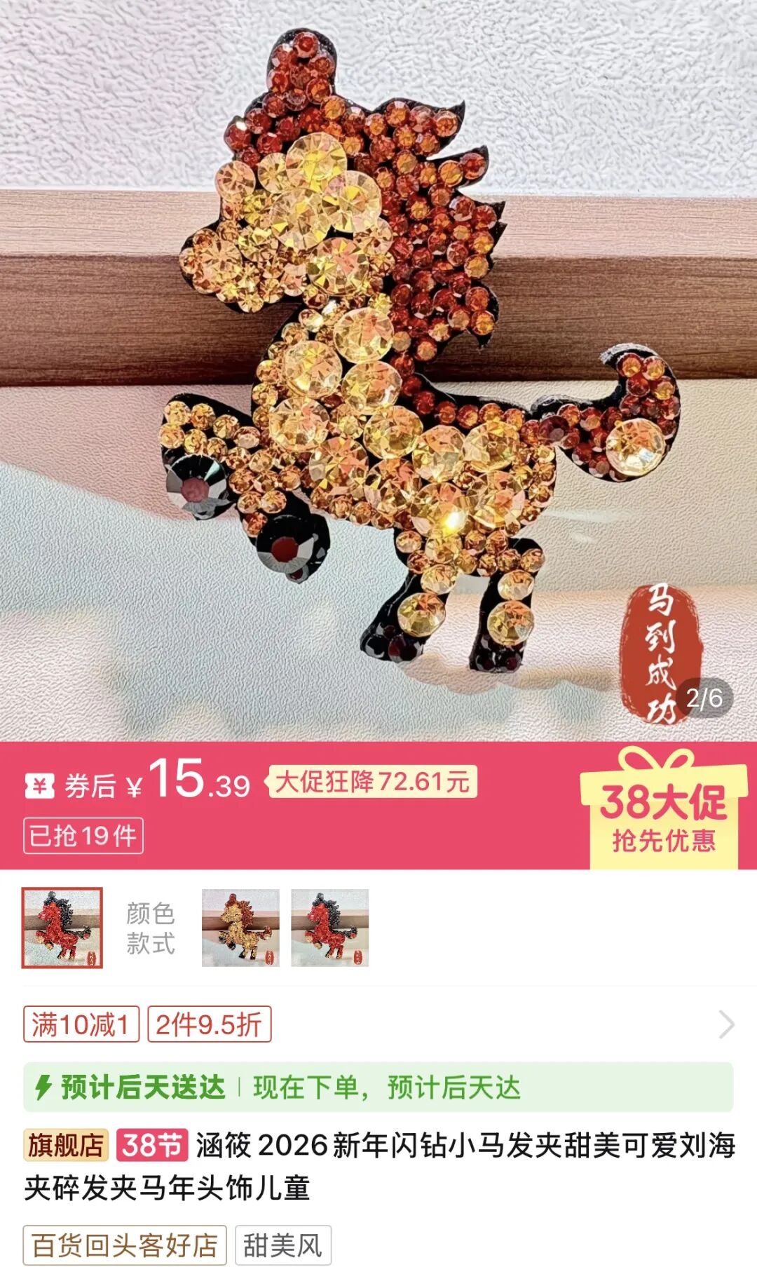 一周内登上水钻发饰销量榜第二