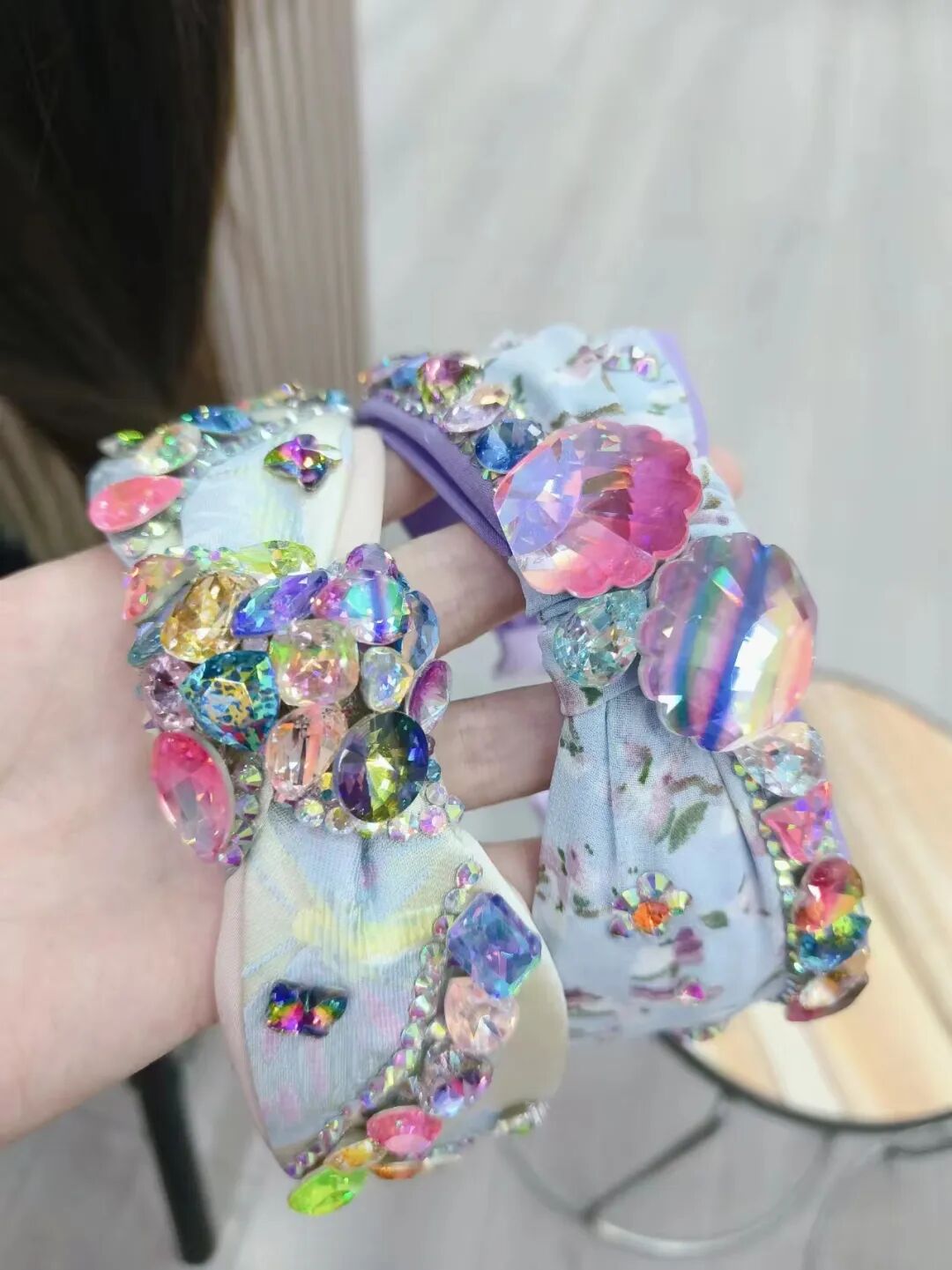 十几年前,在一次韩国旅行的途中,Kimi看到了让她眼前一亮的产品,“那是一款水钻发夹,太特别了,我们家就是饰品厂,饰品我见得多了,但那款发夹特别闪,价格也是真的贵,一个好几百。”Kimi表示,这是她专注生产水钻发饰的缘起。