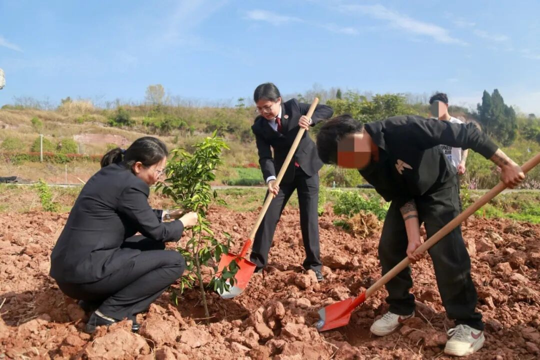 岳池县法院、县检察院、县司法局联合组织未成年社区矫正对象,开展“履行植树义务,共建美丽中国”主题活动 。李宇 邓寒允 摄