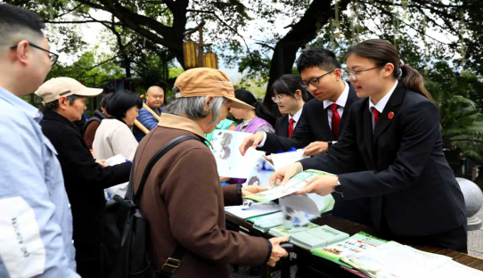 宜宾市翠屏区人民法院联合区人民检察院、区林竹局、合江门街道,在城区水东门广场开展古树名木保护专项普法宣传活动。张慧琳 彭屏 摄